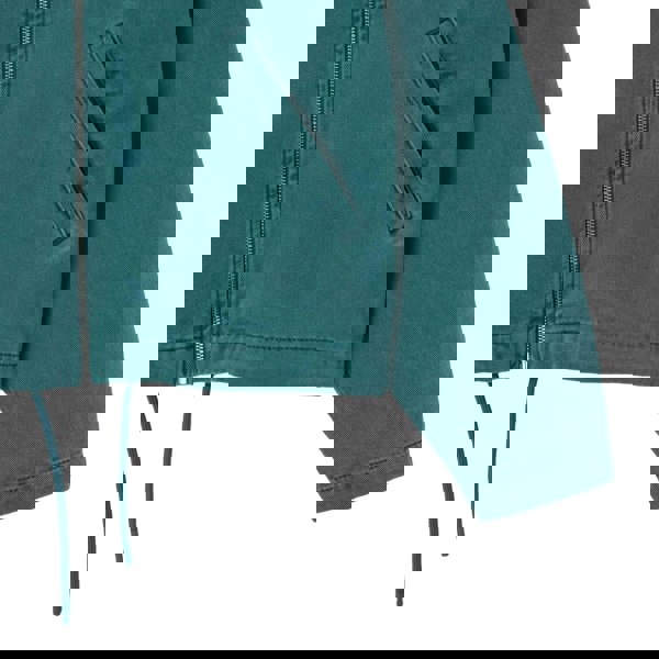 An adjustable drawstring hem allows the shape to be altered as needed, making it suitable for everyday wear and layering.