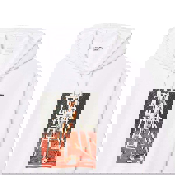 This Lacoste women’s hoodie comes in white fleece with an oversized fit and a pull over fastening. The hooded neckline is finished with a drawstring and sew-on hood construction, while long sleeves and ribbed trims keep the shape clean and structured.