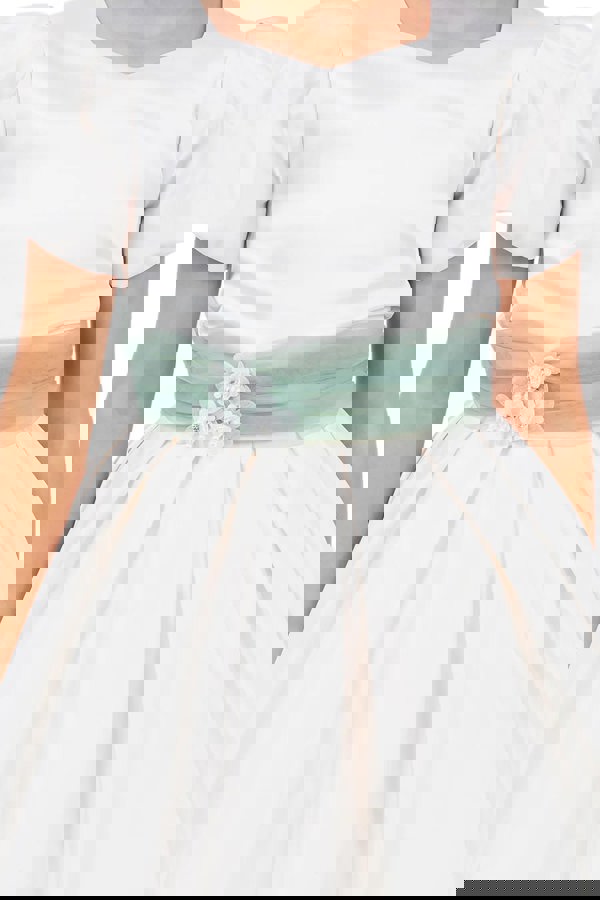 Elevate every special occasion with the exquisite Satin Floral Puff Sleeve Dress! Delicate puff sleeves and a jewel neckline are beautifully adorned with an organza sash, adding a touch of elegance to this already stunning gown. Watch your little one shine brightly on their special day in this truly magical dress!