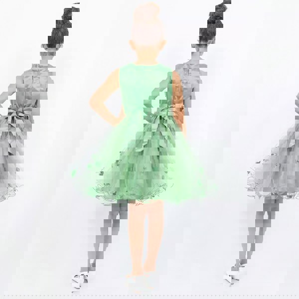 The elegant tulle dress embedded in 3D flowers, sequins, and also displaying a back satin sash that's also combined with a cotton lining, showcases exquisite craftsmanship and attention to detail.