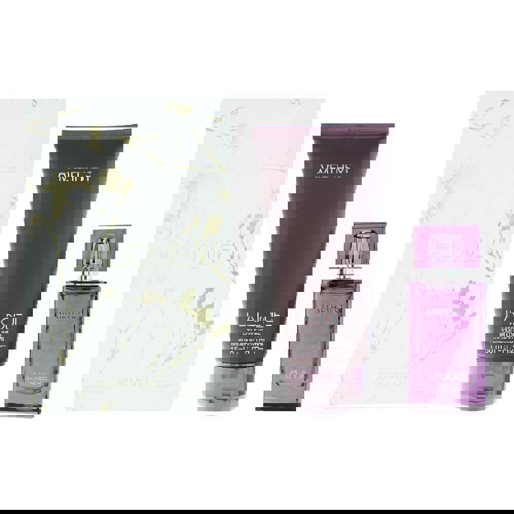Lalique Amethyst is a fruity floral fragrance presented here as a two-piece gift set, pairing an eau de parfum with a matching body lotion. Bright, berry-like notes lead the scent, balanced by soft florals and a smooth, musky dry-down for a rounded finish.
