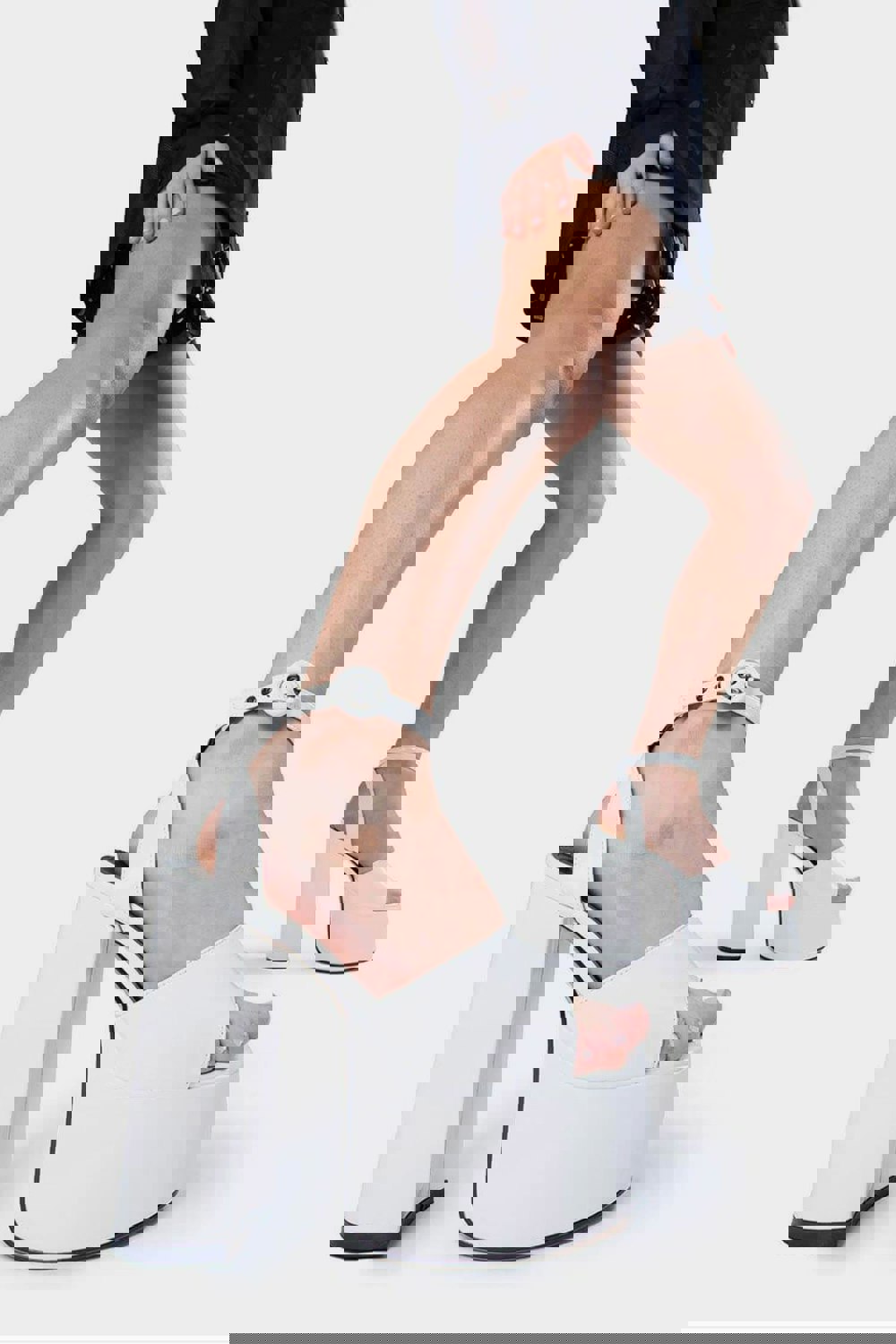 Step out in style with the Lamoda All For You Platform Sandals White Open Toe High Heels Strap . Featuring a sleek white upper, high platform heel, and adjustable ankle strap, these sandals add a chic and playful statement to any outfit.