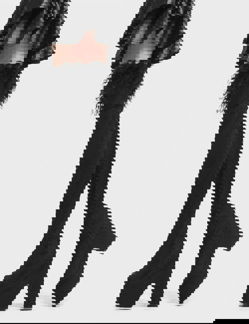 Luxurious black suede-look upper with feather cuff detail