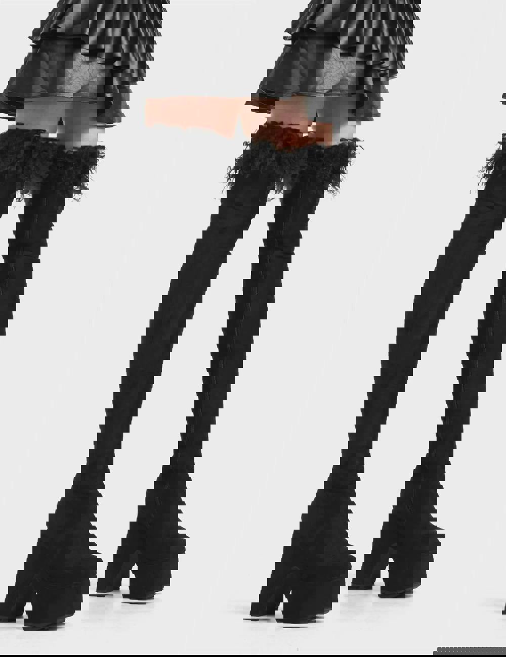 Lamoda Another Level Black Suede Feather Cuff Platform Thigh High Boots Size