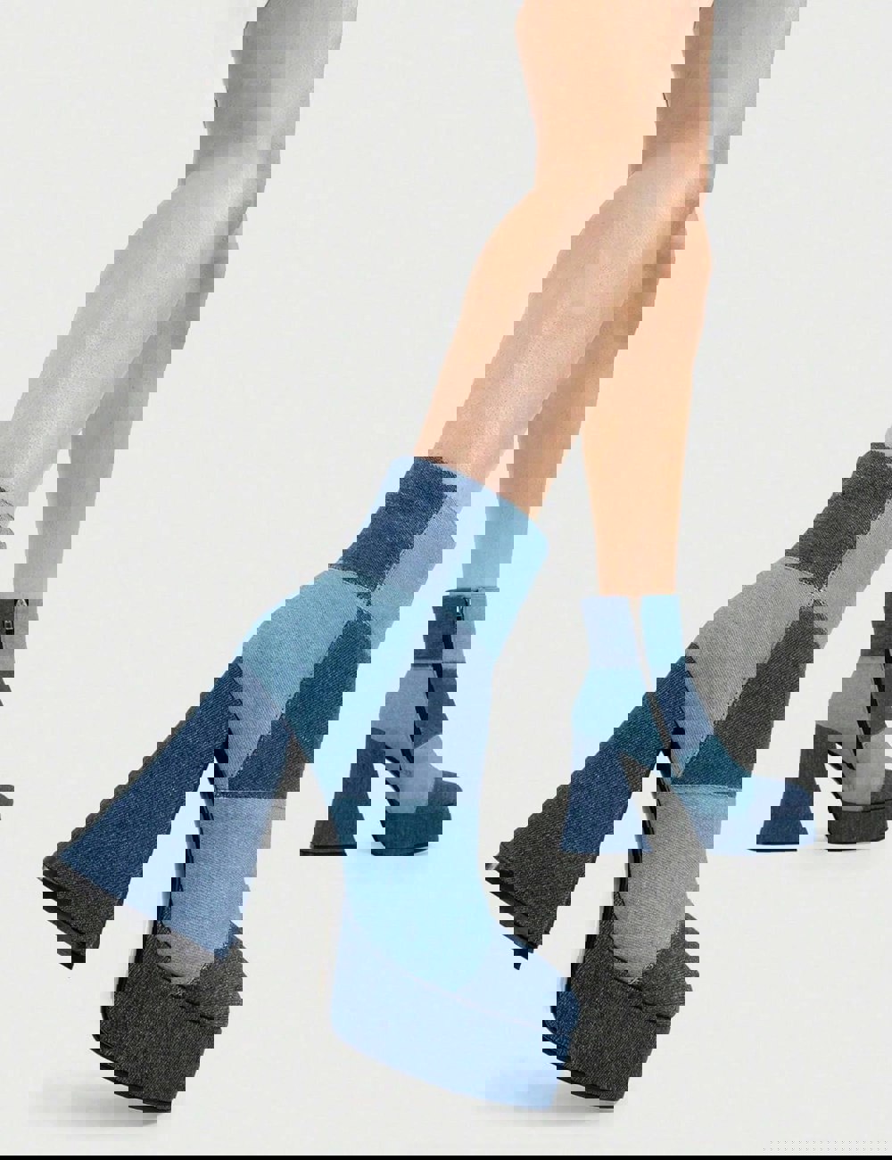 Break In Two Platform Ankle Boots in Denim. These platform boots feature our iconic patchwork denim finish on a platform sole, leave fashionable imprints with every step. these platform boots are Trendy!