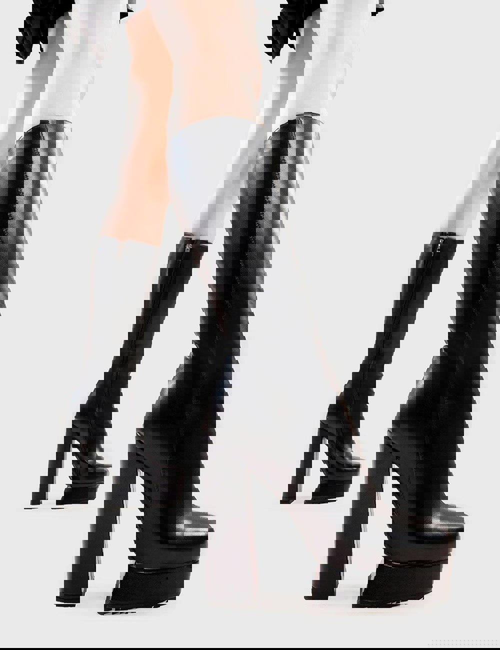 Boiling Point Platform Calf Boots in Black faux leather. These platform boots feature on a chunky platform sole, leave them with a lasting impression. and , these platform boots are as ethical as they are Perfect!
