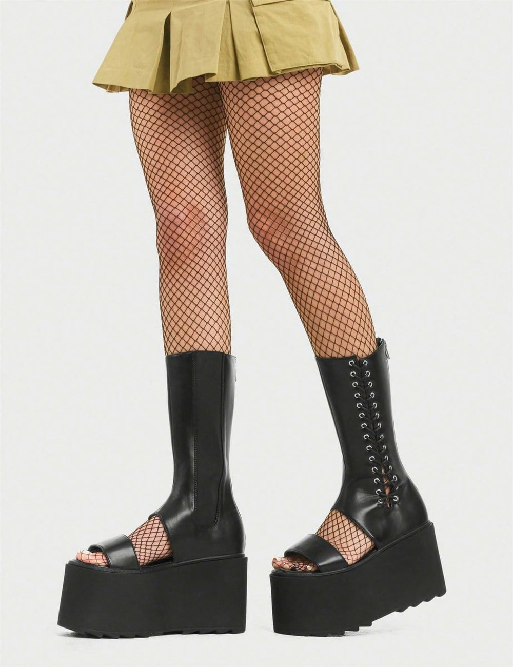 Hurricane Chunky Platform Ankle Boots in Black faux leather. Thess Boots feature a Chunky Features a lace up design on the side alongside cut our detail along the front of the boot . these Boots are hot!