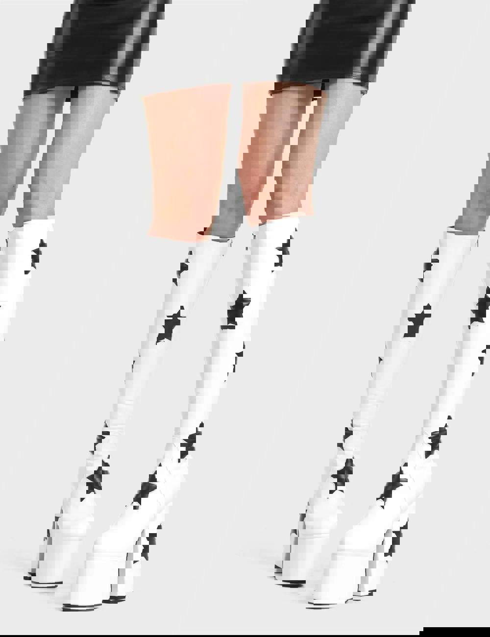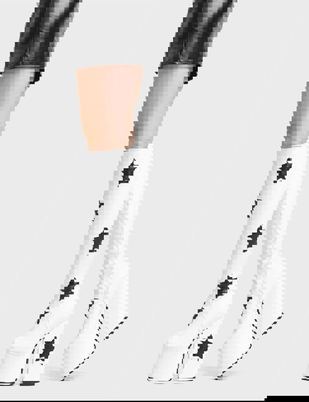 1x Lamoda Comet White PU with Black Star Knee High Platform Boots for Women Stylish