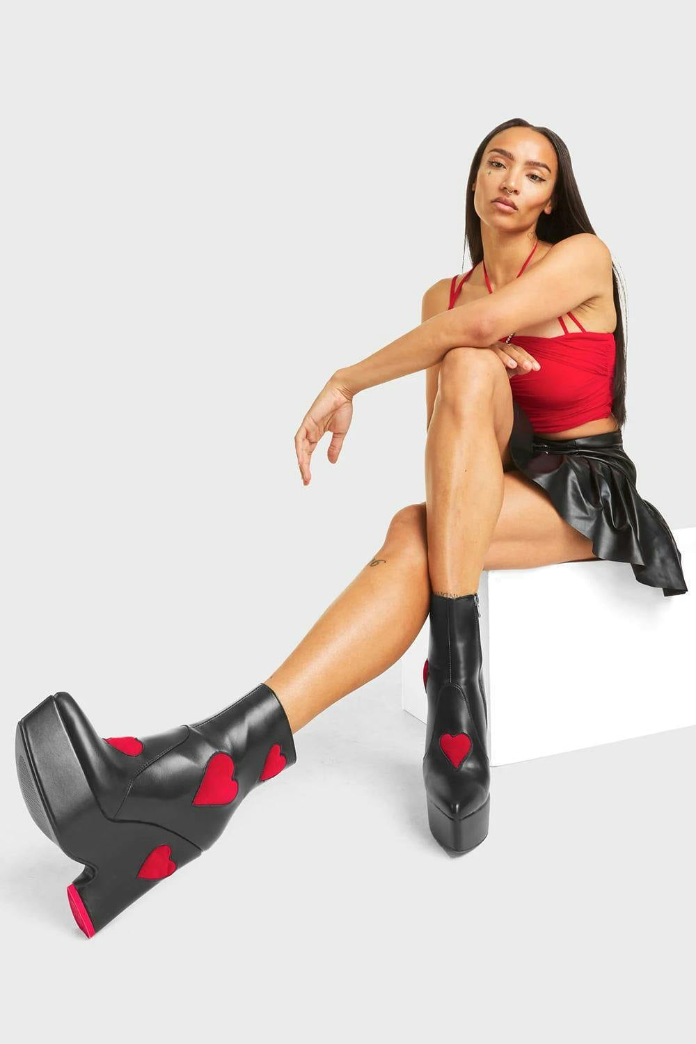 Box contains: 1 x Lamoda Copacetic Black PU Dark Red Chunky Platform Heels Women Elegant