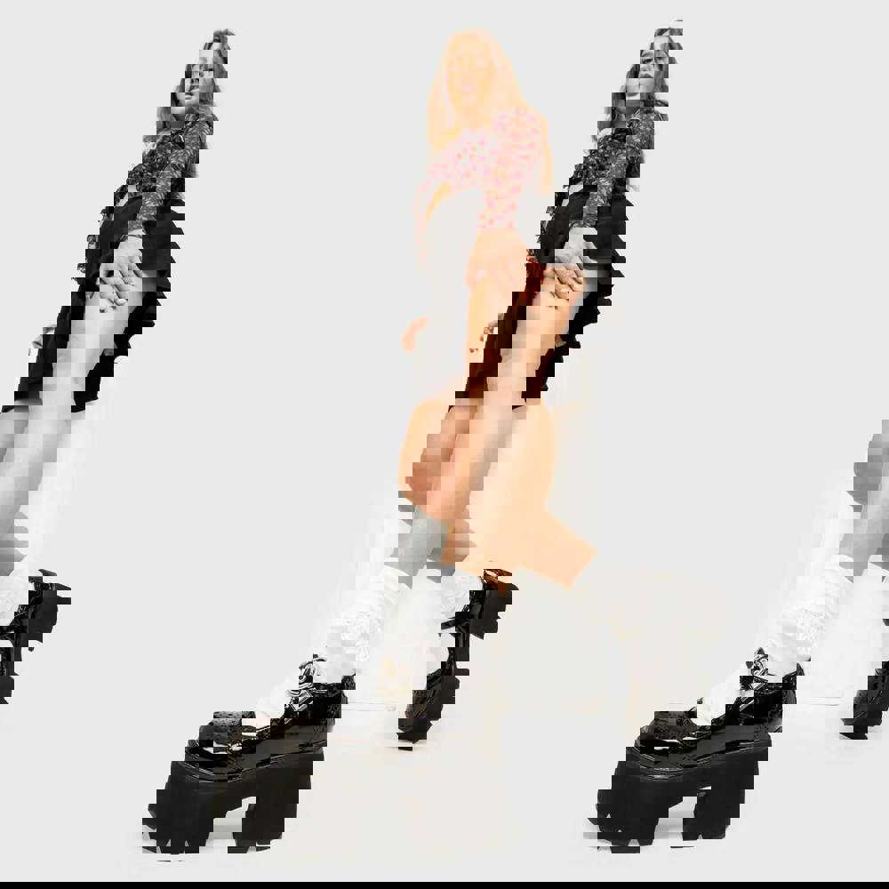 Box Contains: 1x Lamoda Dedicated Chunky Mary Jane Shoes Black Patent Platform Gothic Heels UK5