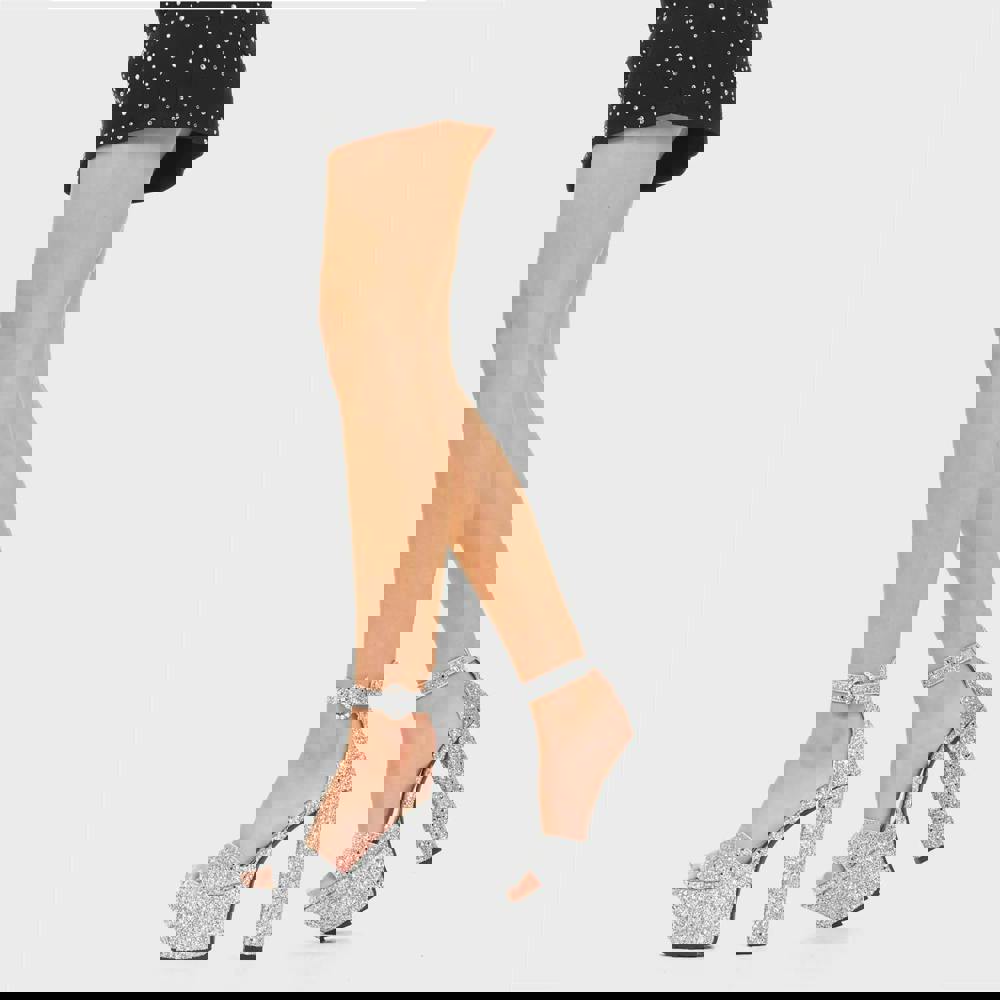 Make an entrance in Lamoda Eye-Catcher platform sandals, finished in silver glitter for high-impact shine. The bold silhouette is set on a chunky platform sole, bringing a modern edge that works well for parties and evening plans. A cushioned insole adds comfort underfoot, while the versatile styling pairs easily with dresses, skirts or trousers.