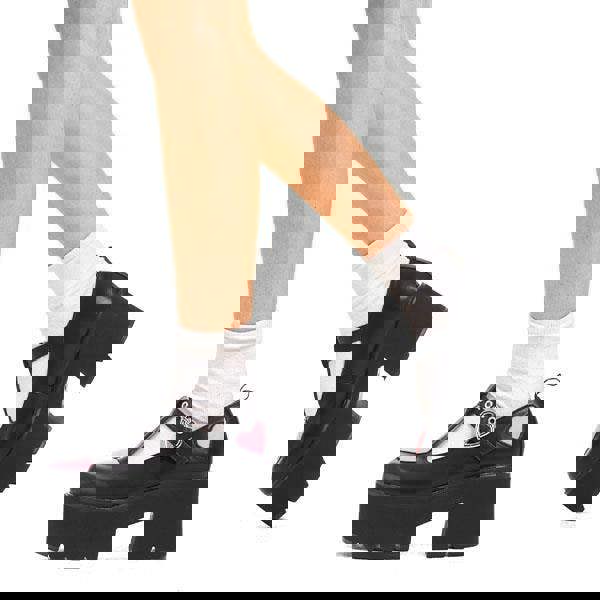 Lamoda Fairytale BlackPU/PinkHeart Chunky Mary Jane Shoes Chic Bold Comfortable Footwear