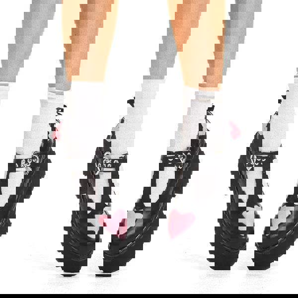 Box contains: 1x Lamoda Fairytale BlackPU/PinkHeart Chunky Mary Jane Shoes Chic Bold Comfortable Footwear
