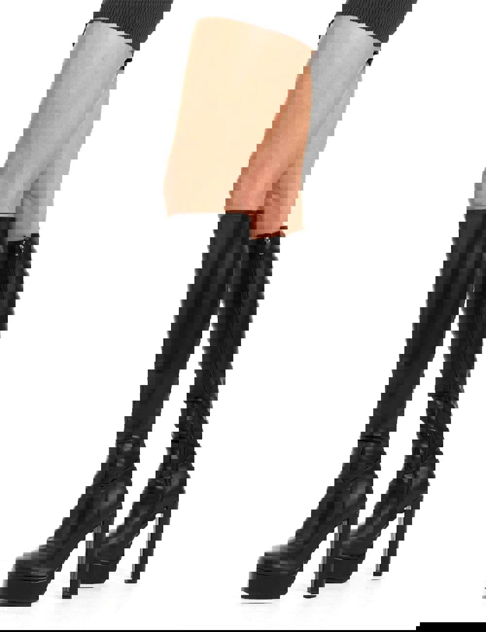 Box contains: 1x Lamoda Game Player BlackPU Platform Knee High Boots, Size UK5