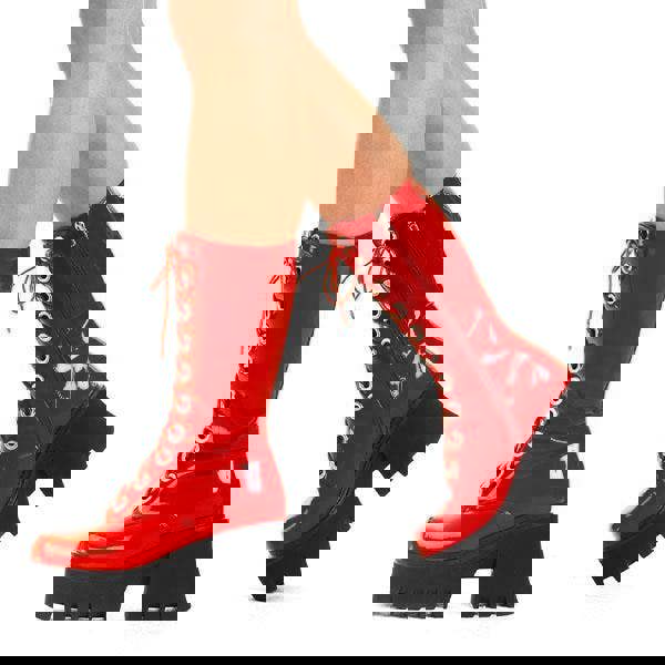 Box contains: 1x Lamoda Get Paid RedPAT Chunky Platform Calf Boots Bold Streetwear
