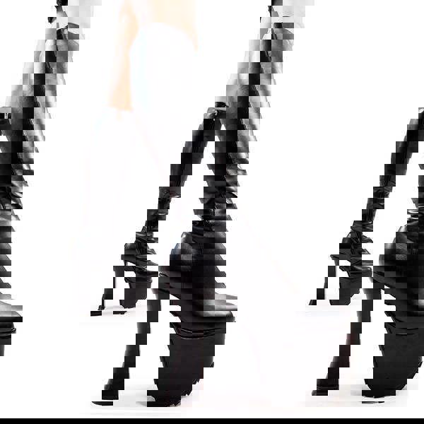 Lamoda Goodbye Black PU Platform Knee High Boots Fashionable Chic Stylish Footwear UK3