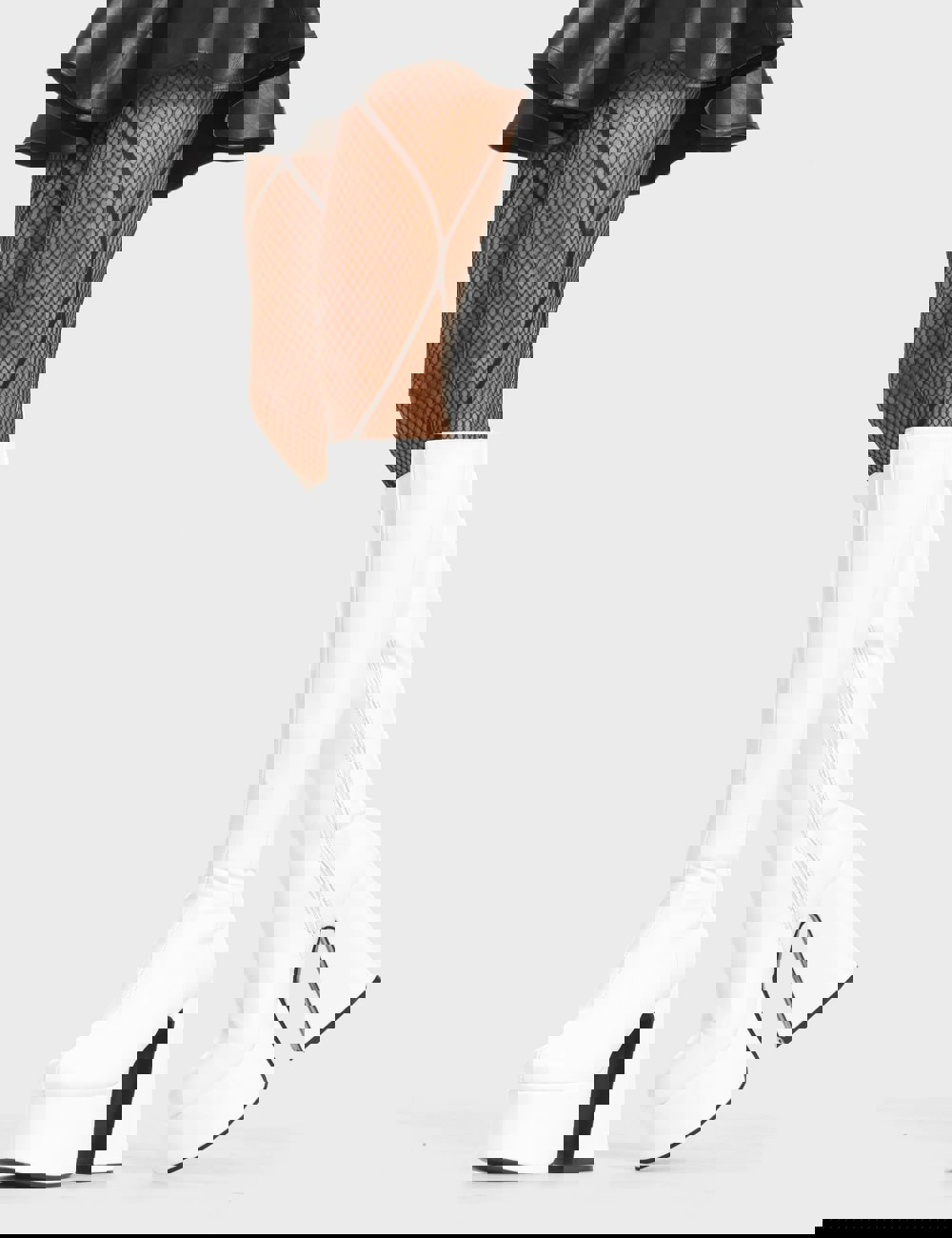 Hate You Platform Knee High Boots in Black faux leather. These platform boots feature a minimalist look with a Flared heel, keeping it nice and classy. Made with eco-friendly materials and 100% cruelty-free, these platform boots are as ethical as they are chic.