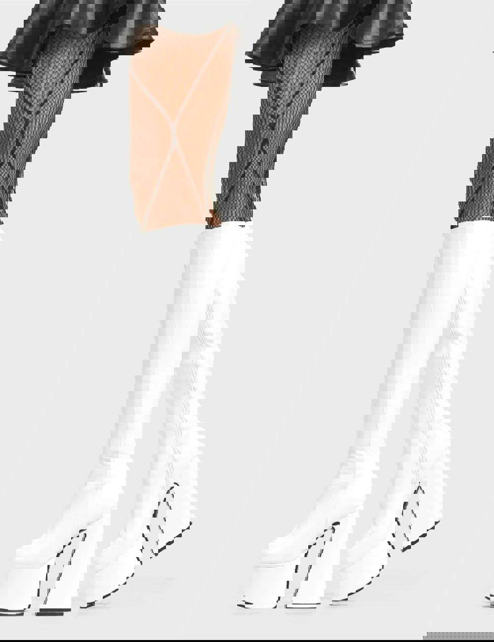 Lamoda Hate You WhitePU Platform Knee High Boots Stylish Chic Trendy Design