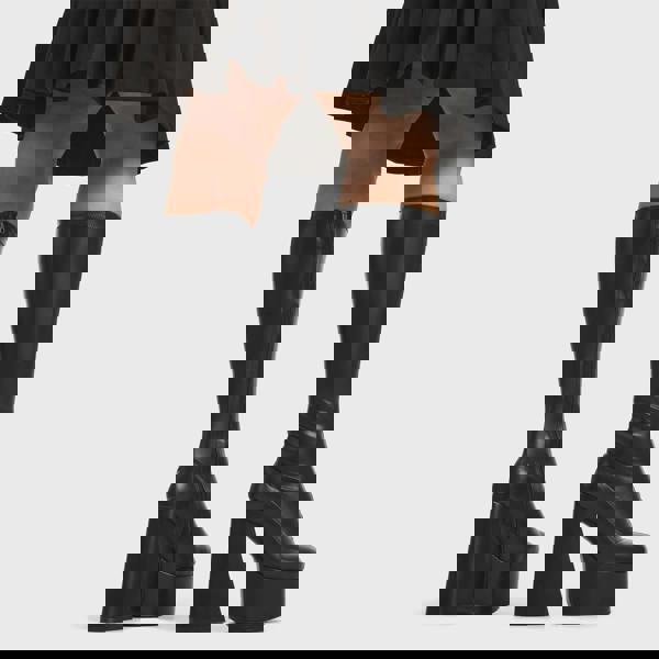 Lamoda Hate Your Black Stretch PU Platform Knee High Boots Stylish Trendy