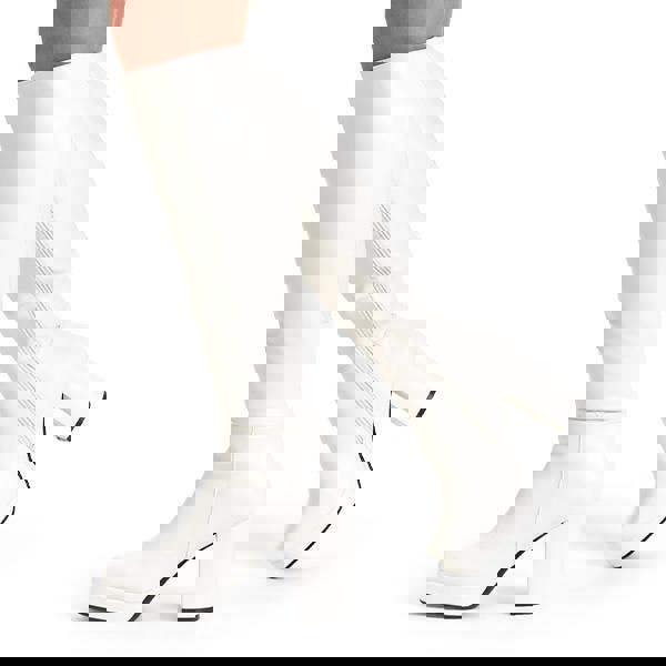 Box Contains: 1x Lamoda Humble White Knee High Platform Boots Chunky Block Heel Vegan
