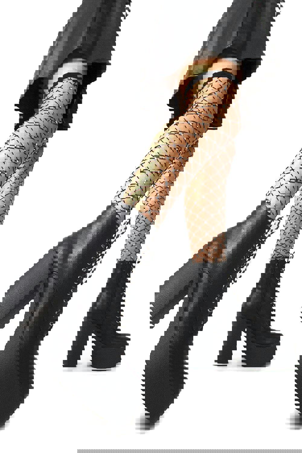 These high impact platforms feature an exaggerated block heel and a robust platform sole providing significant elevation while maintaining a bold silhouette. The minimalist black design and square toe finish offer a versatile look that pairs effortlessly with everything from baggy cargo trousers to mini dresses. Whether you are looking to complete a goth inspired ensemble or simply want a standout pair of heels for a night out, these boots deliver the perfect mix of height and attitude.