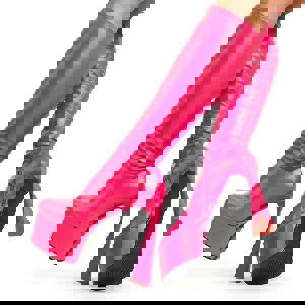 FOREVER TOGETHER Talk Platform Knee High Boots – Fuchsia Stretch Faux Leather