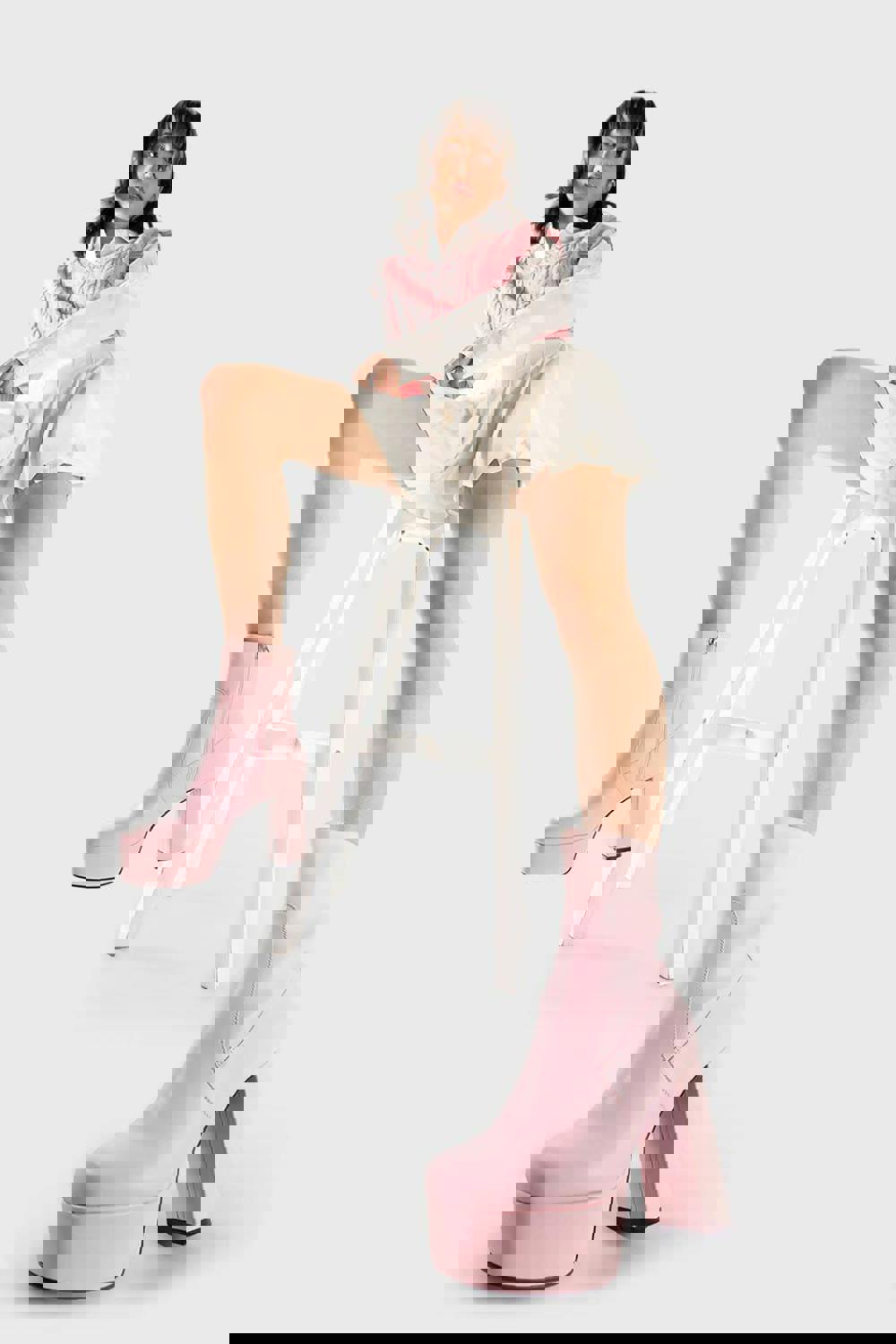 Constructed for both visual impact and structural stability, these boots feature a wide block heel and a reinforced platform to ensure a confident and balanced stride. The high-quality vegan leather is designed for durability and a consistent finish, while the integrated side-zip fastening allows for a secure and effortless fit. These boots are the definitive choice for those looking to elevate their style with a bold, architectural edge.