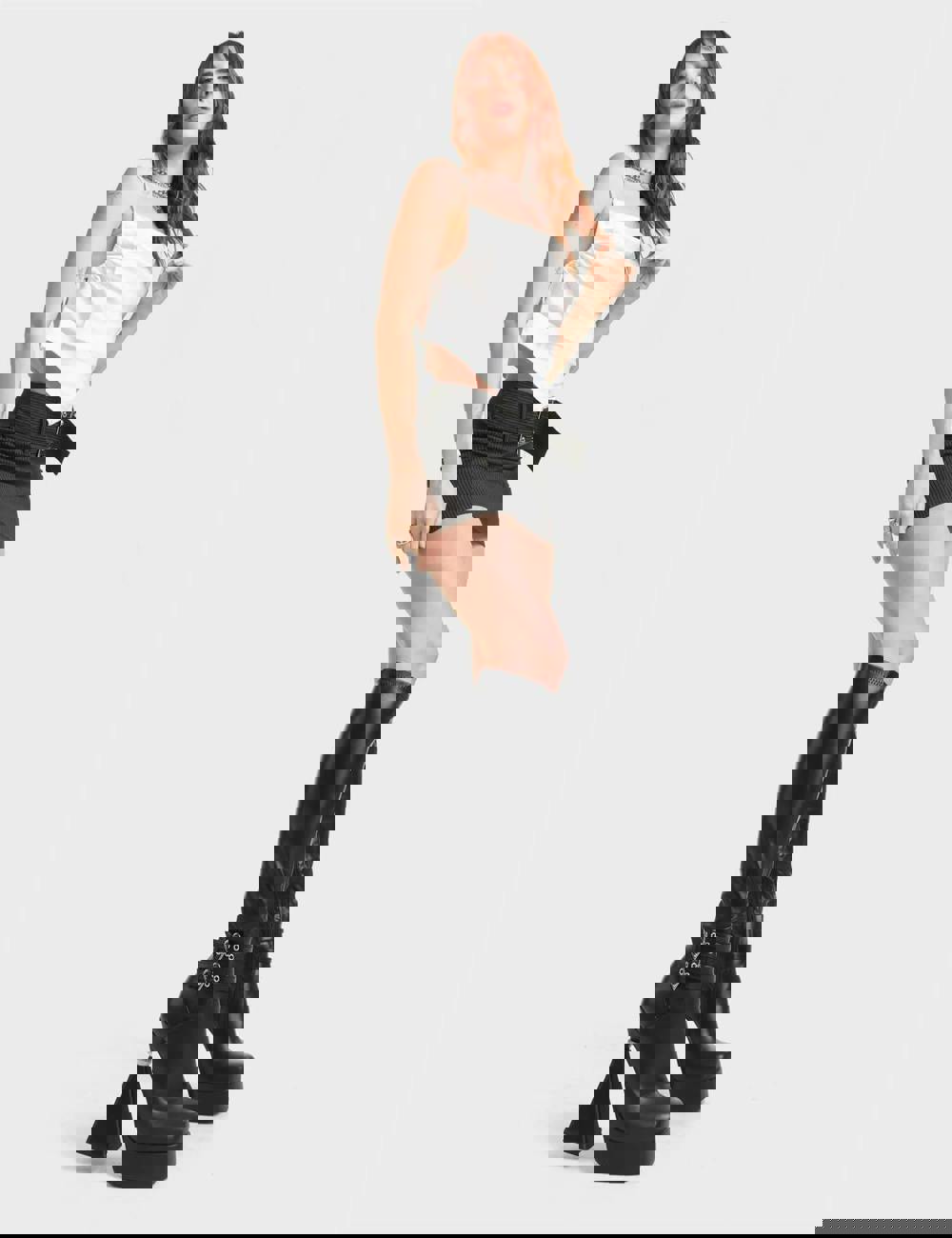 Box contains: 1 x Lamoda Love It Platform Knee Boots for Women Black PU Stylish Knee High