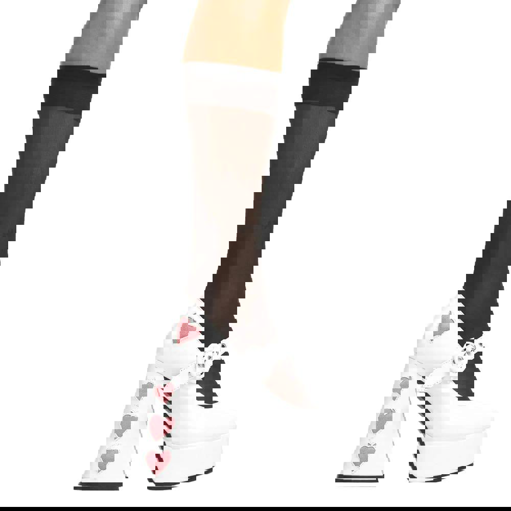 Add a touch of romance to your gothic fashion with the Lamoda Love Sick Platform Heels in White Patent with Pink Heart detail. These chunky gothic heels feature a bold platform and sturdy block heel, delivering height, edge, and standout style for parties, raves, festivals, or alternative street fashion.