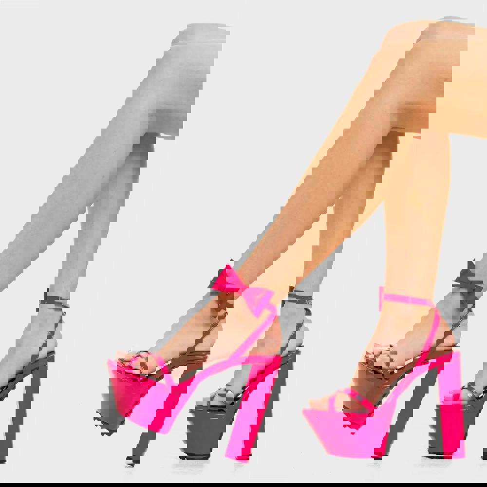 A high-impact addition to warm-weather looks, Lamoda Not Your Girl platform sandals bring a bold finish in fuchsia patent. The glossy synthetic upper is paired with a chunky platform sole, creating a contemporary silhouette that works for casual plans and evening outings alike.