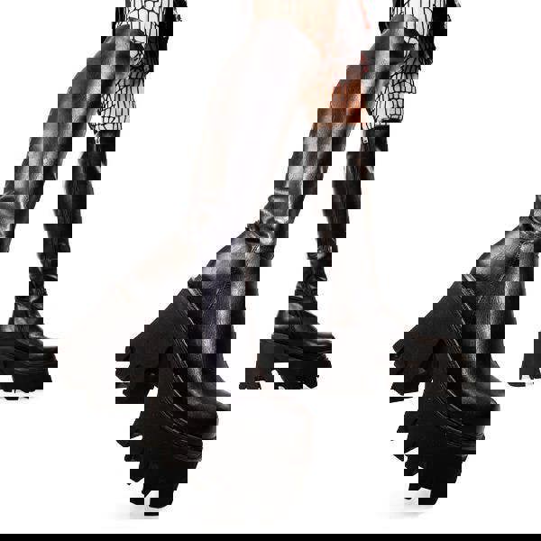 Beyond the striking visual appeal, the Ready model is built for the practicalities of the UK climate and long-wear events. Featuring a robust, cleated rubber sole for superior grip and a full-length inner side zip, these boots are designed for easy access and a secure, supportive fit around the calf. Whether you are navigating a muddy festival field or city pavements, the water-resistant synthetic upper and reinforced platform height make these the go-to chunky boots for reliable, all-day performance without sacrificing your edge.