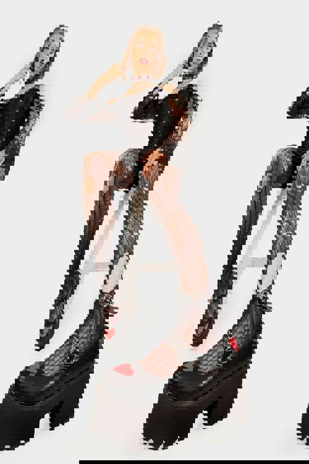 Chunky Mary Jane shoes with red heart detail and platform sole