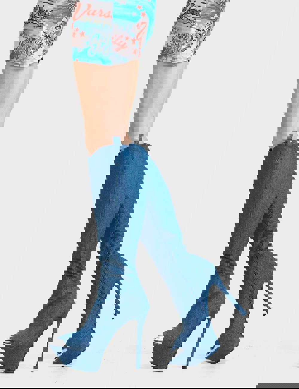 Lamoda Seal My Fate Stylish Denim Platform Knee High Boots for Women