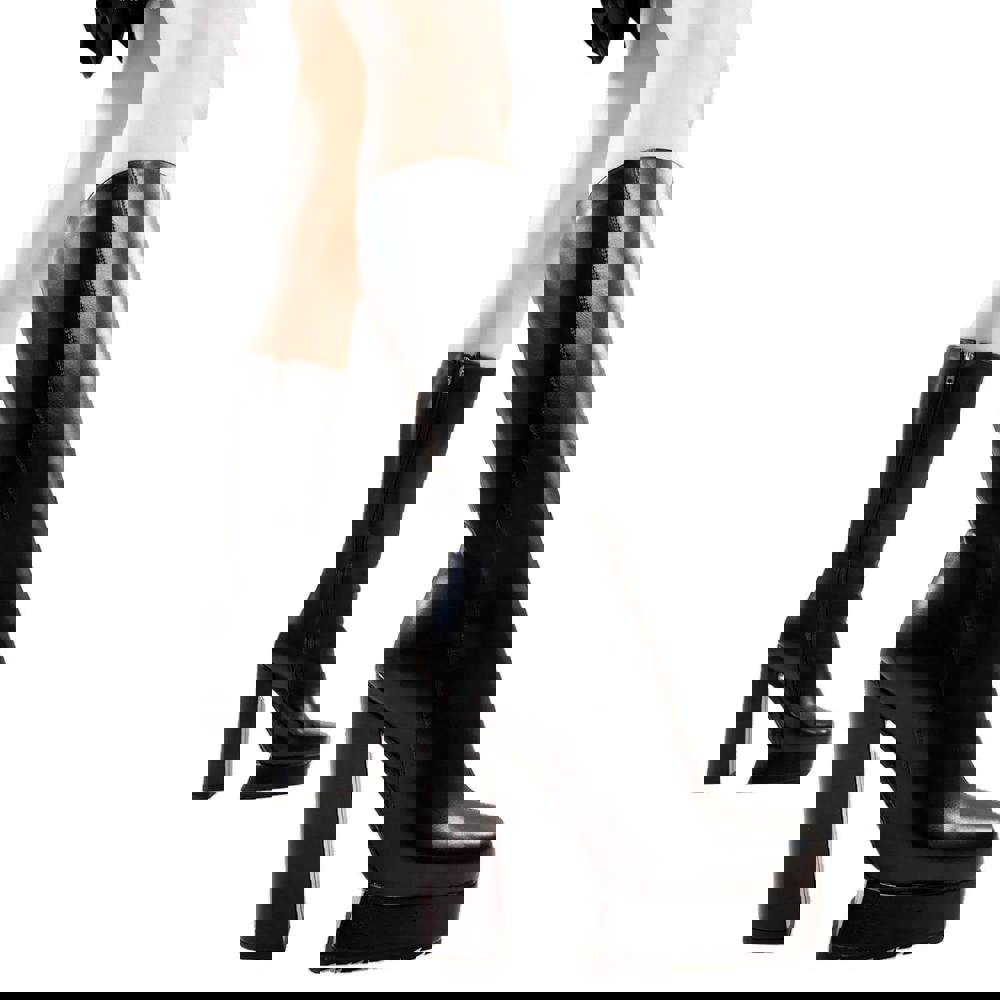 Lamoda Second Nature Black PU Platform Knee High Boots Bold Statement Footwear UK6