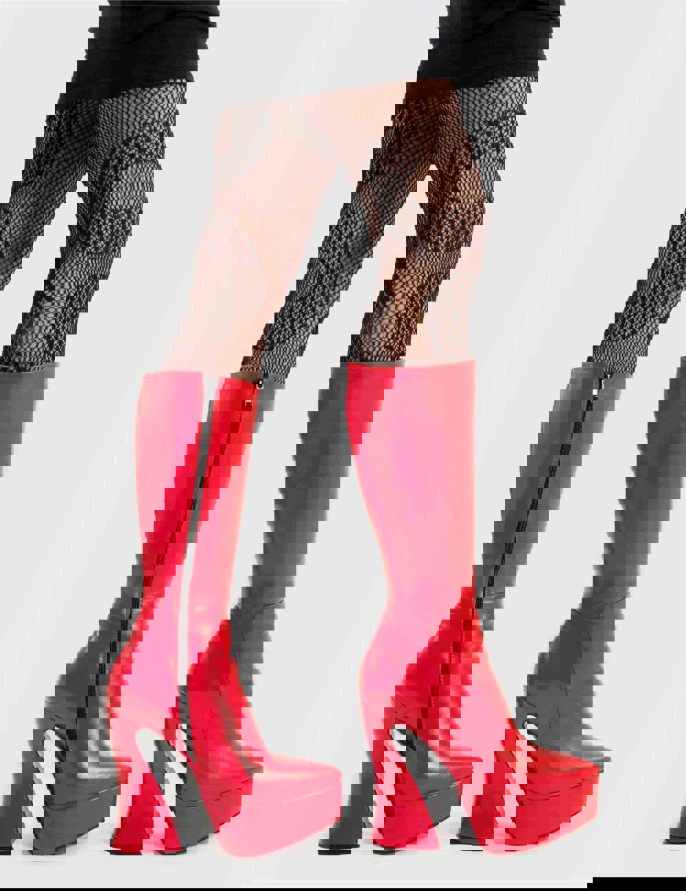 Constructed from premium vegan friendly red PU, these boots are selected for their deep color saturation and resilient texture. The design focuses on a balanced silhouette, utilizing a wide block heel and a thick front platform to provide a statuesque height while maintaining a stable base. The calf high cut is engineered to hold its shape, providing a clean and professional look through regular use.