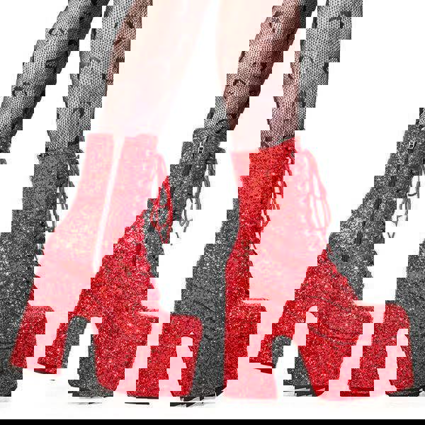 Step into the spotlight with the Lamoda Spotlight Chunky Platform Ankle Boots. Designed with a dazzling red glitter finish, these ankle boots are the ultimate statement piece for gothic, punk, and festival fashion lovers. Their chunky platform and block heel deliver height, confidence, and style all in one bold pair.