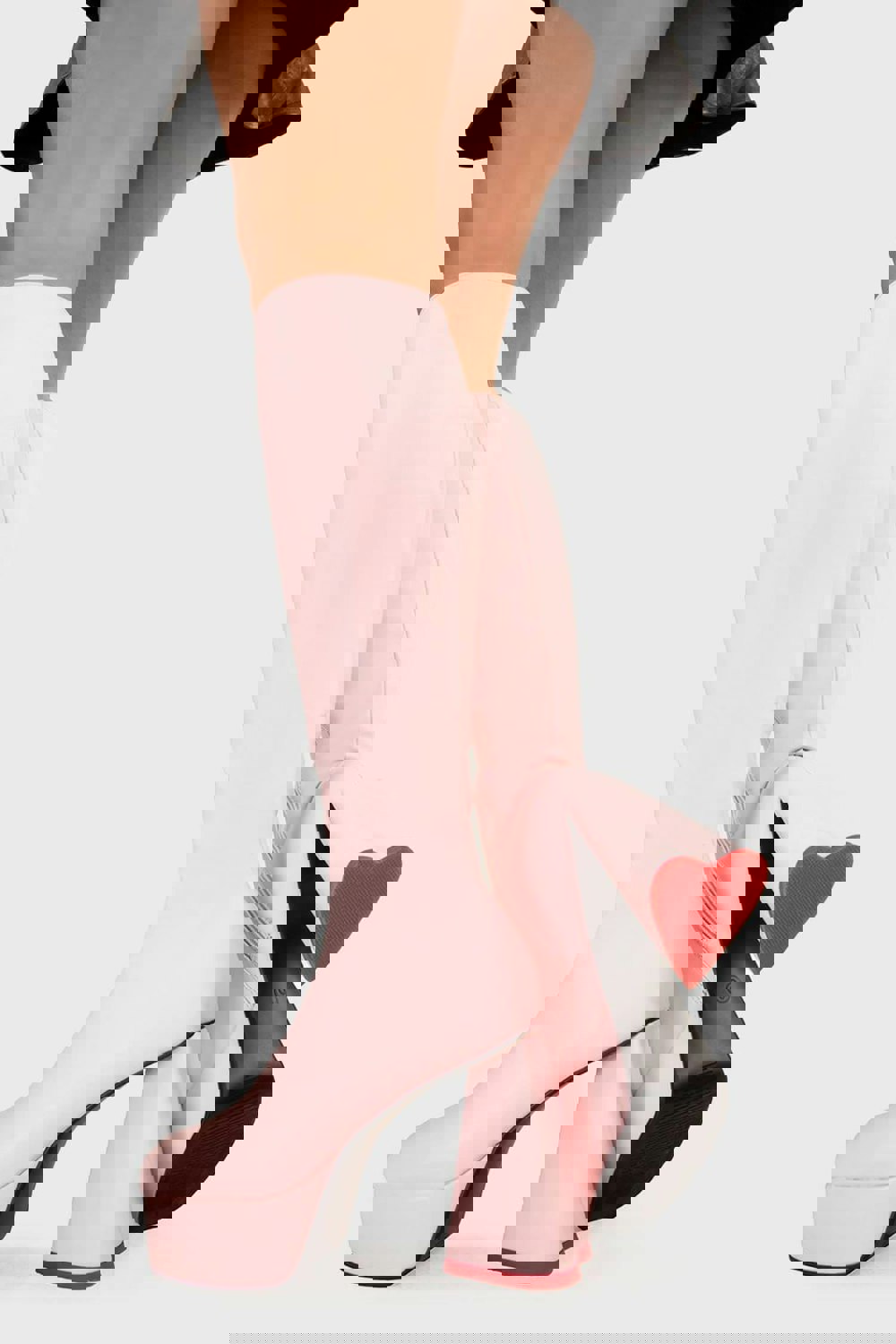Sweet Talker Platform Knee High Boots in Pink faux leather. These platform boots feature a minimalist look with a heart shaped heel, keeping it nice and classy. Made with eco-friendly materials and 100% cruelty-free, these platform boots are as ethical as they are chic.
