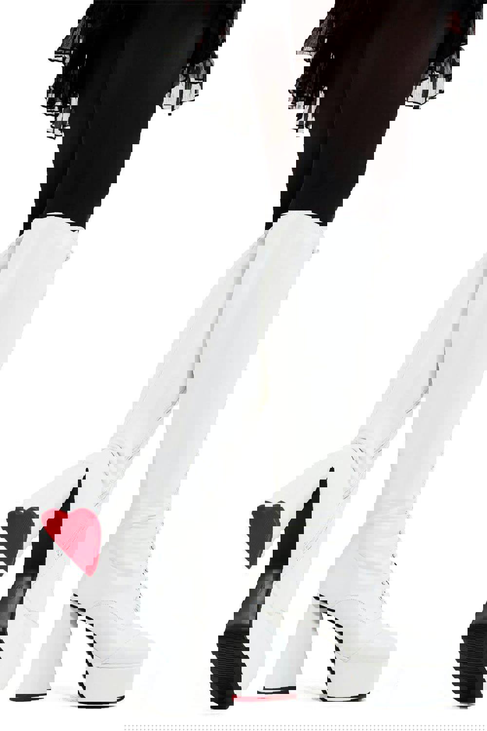 The Lamoda Too Cute knee high boot is a standout piece that perfectly balances a playful aesthetic with the brand’s signature heavy-duty silhouette. Finished in a crisp white PU, this model features a tall, streamlined leg profile and a massive chunky platform. These boots are engineered for those who want to achieve maximum height and a clean, monochromatic look that serves as a bold centerpiece for any alternative or high-fashion outfit.