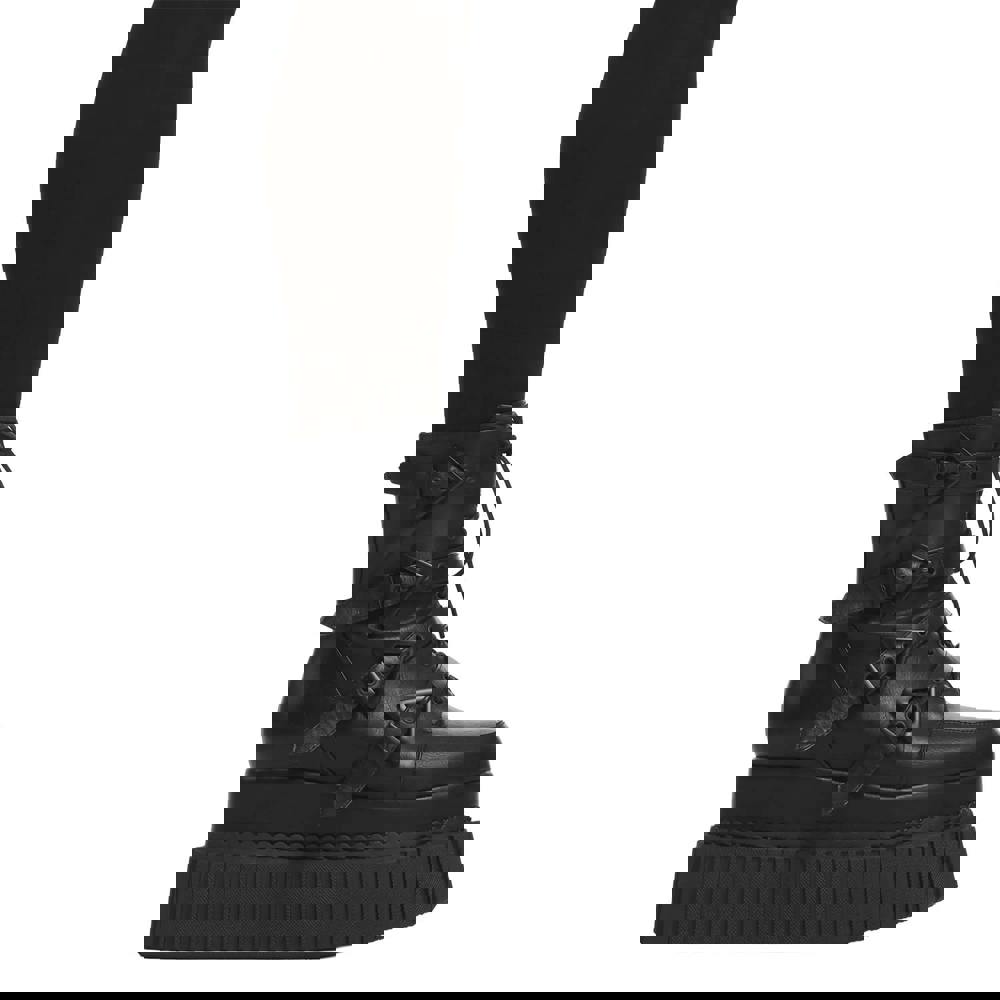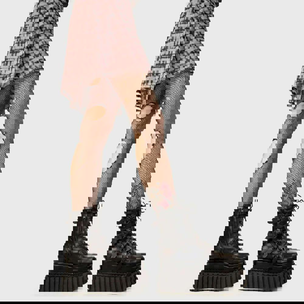 Crafted from high-quality black PU, these boots feature a secure lace-up design and a cushioned insole for maximum comfort. Whether you're heading to a festival, gig, or styling an edgy everyday look, these platform creepers bring confidence, height, and attitude to your outfit.