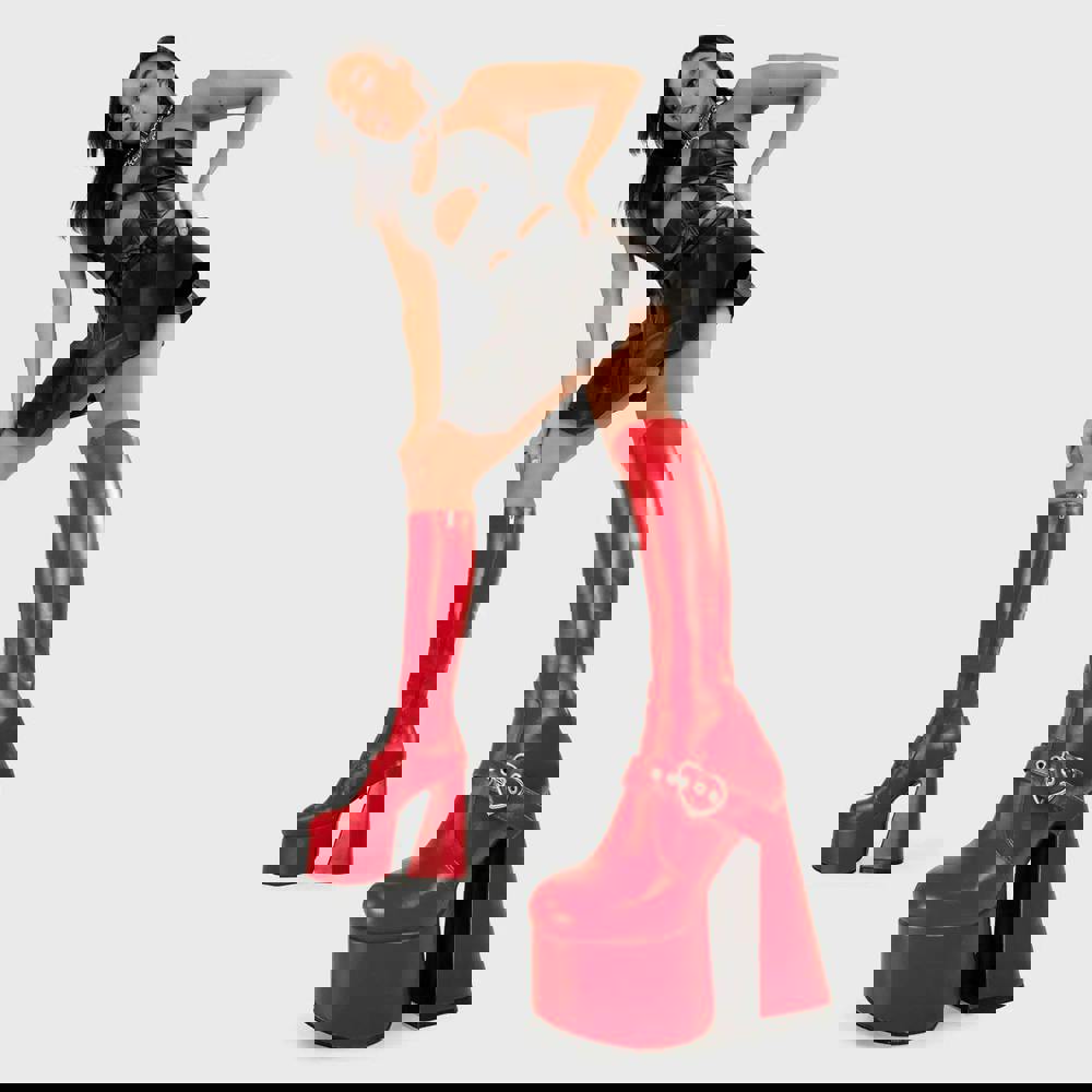 Lamoda Walk With Love RedPU Platform Knee High Boots Bold Streetwear Fashion
