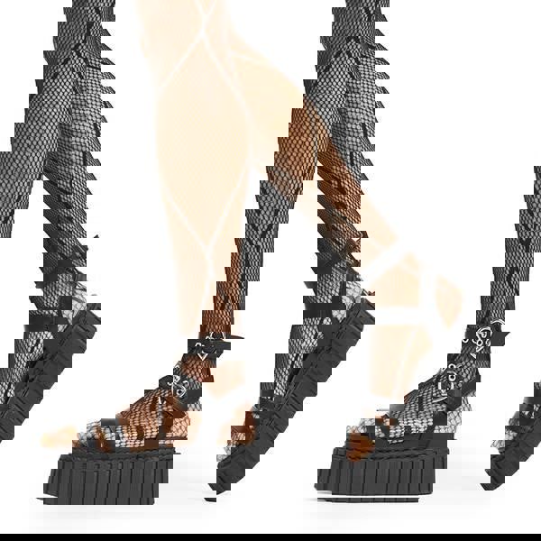 Walkin' On Sunshine Chunky Platform Creeper Sandals in Black faux leather. These creeper sandals feature a multiple strap cut-out design, including two adjustable straps with silver eyelets and heart-shaped buckles. Made with eco-friendly materials and 100% cruelty-free, these platform sandals are as ethical as they are Loving!
