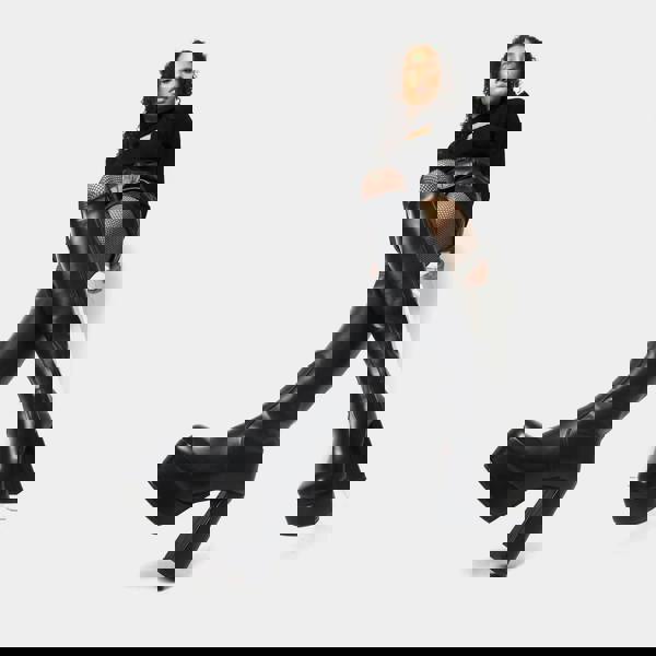 Step into the spotlight with these iconic Lamoda Whatta Showdown platform knee high boots in a sleek black PU finish. Designed for those who demand attention, these boots perfectly capture the retro 90s aesthetic with a modern alternative twist. Crafted from high quality vegan leather, they offer a durable and animal friendly way to embrace the extreme chunky boot trend, making them a must have for any festival, rave, or edgy high fashion outfit.