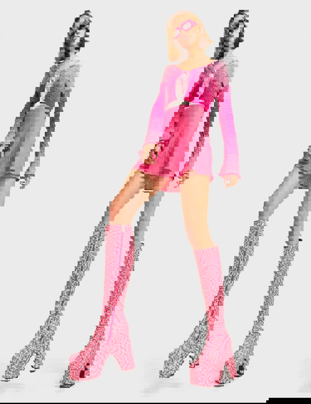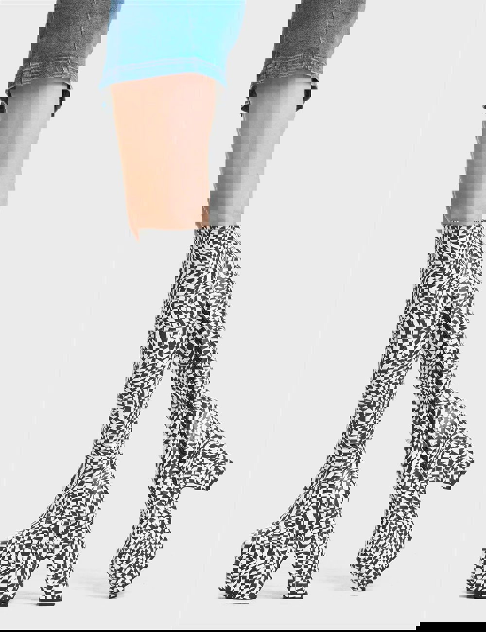Stand out with these platform knee-high boots featuring a unique black and white check design. Made with eco-friendly, 100% cruelty-free materials, they combine style and ethics effortlessly.