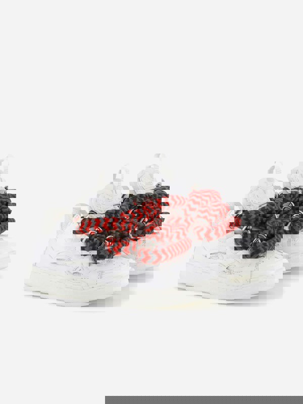 Lanvin Kids Leather Curb Trainers in white bring a clean, premium look to everyday footwear. Made from white leather, they offer a sleek finish with a durable feel. The unisex design suits both boys and girls, making them a versatile option for a range of wardrobes.