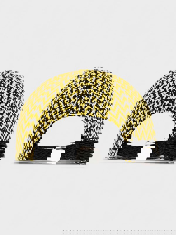 This Lanvin Curb Baseball Cap combines bold black fabric with striking yellow accents, delivering a refined yet edgy streetwear look. Crafted for comfort and durability, its curved brim offers sun protection, while the adjustable back ensures a perfect fit. Ideal for adding a touch of luxury to casual outfits, this cap merges high fashion with urban style effortlessly.