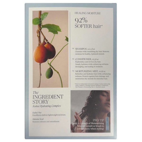 Bring lasting hydration into your routine with the L’Anza Healing Moisture Bundle, a three-piece set featuring L’Anza Healing Moisture Shampoo (300ml), L’Anza Healing Moisture Conditioner (250ml) and L’Anza Healing Moisture Moisturising Mist (200ml). Created for dehydrated hair, each formula pairs Polynesian botanicals with targeted oils to support a softer, smoother feel from cleanse to finish.