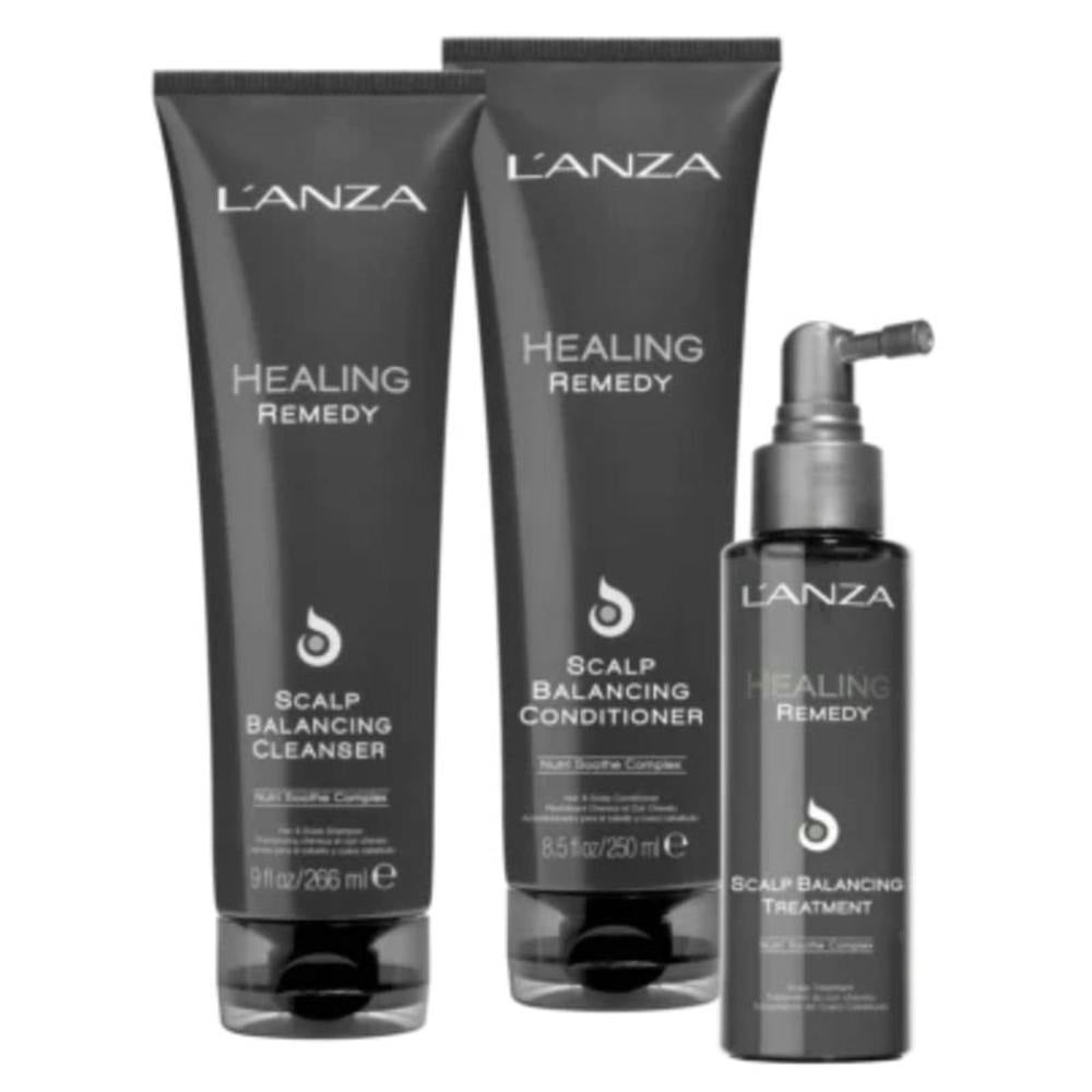The Healing Remedy trio, containing the LANZA Nutri Soothe and other nurturing botanicals help to soothe, calm and hydrate the scalp. Resulting in maximum hair health & wellness.