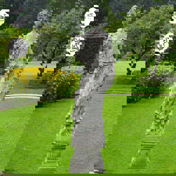 This beautiful statue featuring a girl holding bunch of Roses on hand would look fantastic in a conservatory, classy and elegant garden, lawns or reception area. Highly detailed facial expressions, flowers, fold of her dress, 4ft high, Stone Cast classic statue can be installed on the lawn, on a pedestal in a decorative pond. The female statue exceptionally represents absolutely outstanding value for a heavy, solid classic sculpture and has proved extremely popular. A most gracious concrete female figure will add a classical elegant touch to any outdoor and indoor décor. Price includes stone cast plinth.