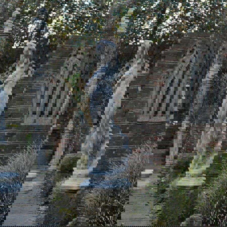 This striking statue featuring a long wavy-haired girl appearing from the shell is casted to impress. This garden ornament would look fantastic in a conservatory, ocean themed or fairy gardens, classic lawns or reception area of commercial premises. Exquisitely detailed facial expressions, shell details, beautifully cast integral plinth her hair makes this woman statue unique focal point of any place. Can be installed on a pedestal, will be a great addition to the decorative ponds. The female statue exceptionally represents absolutely outstanding value for a heavy, solid classic sculpture. A most gracious concrete female figure will add a classical elegant touch to any outdoor and indoor décor. Plaque shown in photo not included.