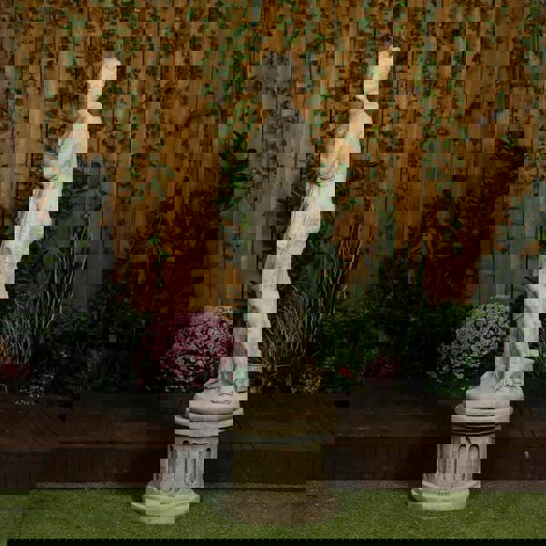 This elegant statue of Pandora, complete with its matching pedestal, is a refined and timeless addition to conservatories, formal gardens, lawns, or reception areas. The sculpture features beautifully detailed facial expressions and exquisitely rendered folds of the draped fabric, showcasing exceptional craftsmanship.